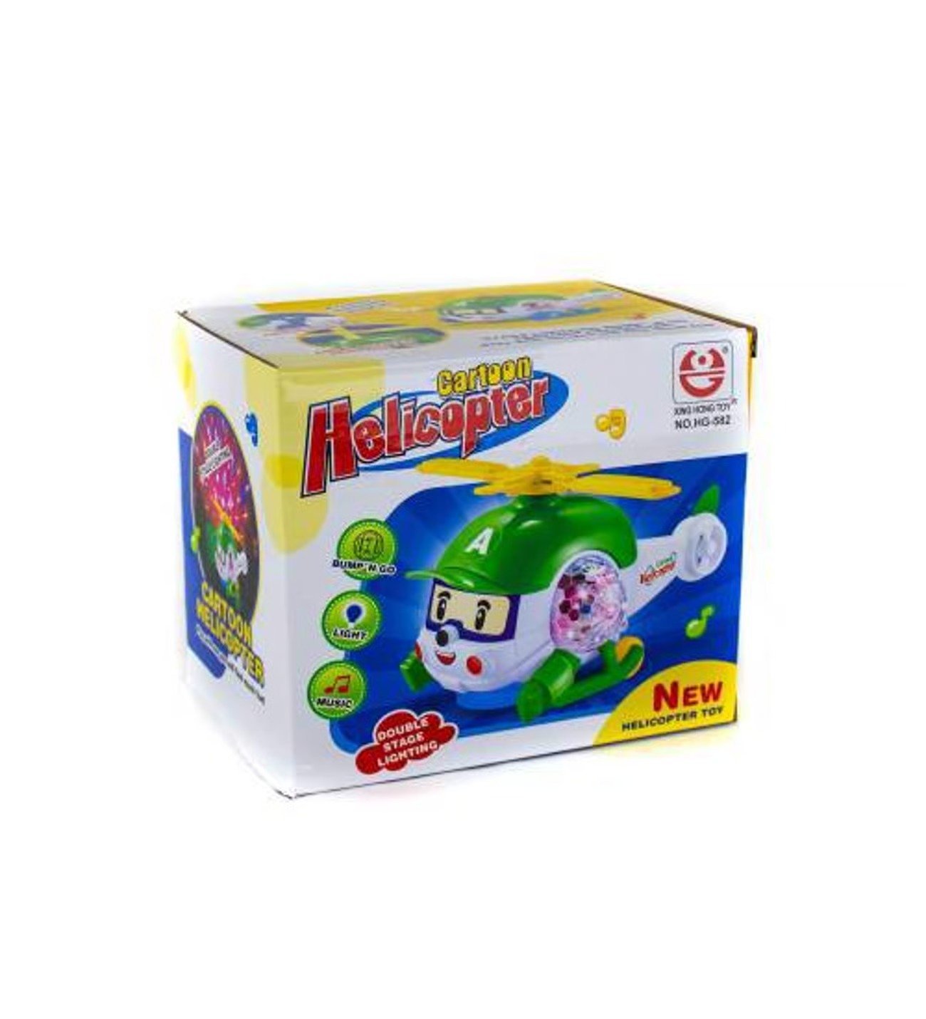 Helicóptero de juguete con luces, música y movimiento automático. Estimula el juego didáctico y la imaginación de los niños.