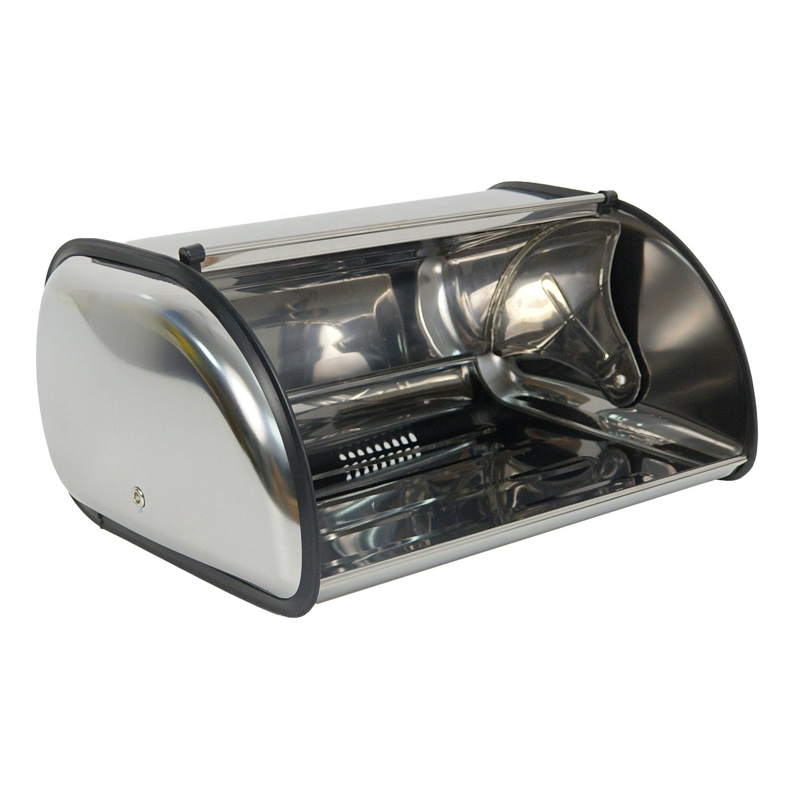 Panera metálica con tapa deslizante para conservar el pan.